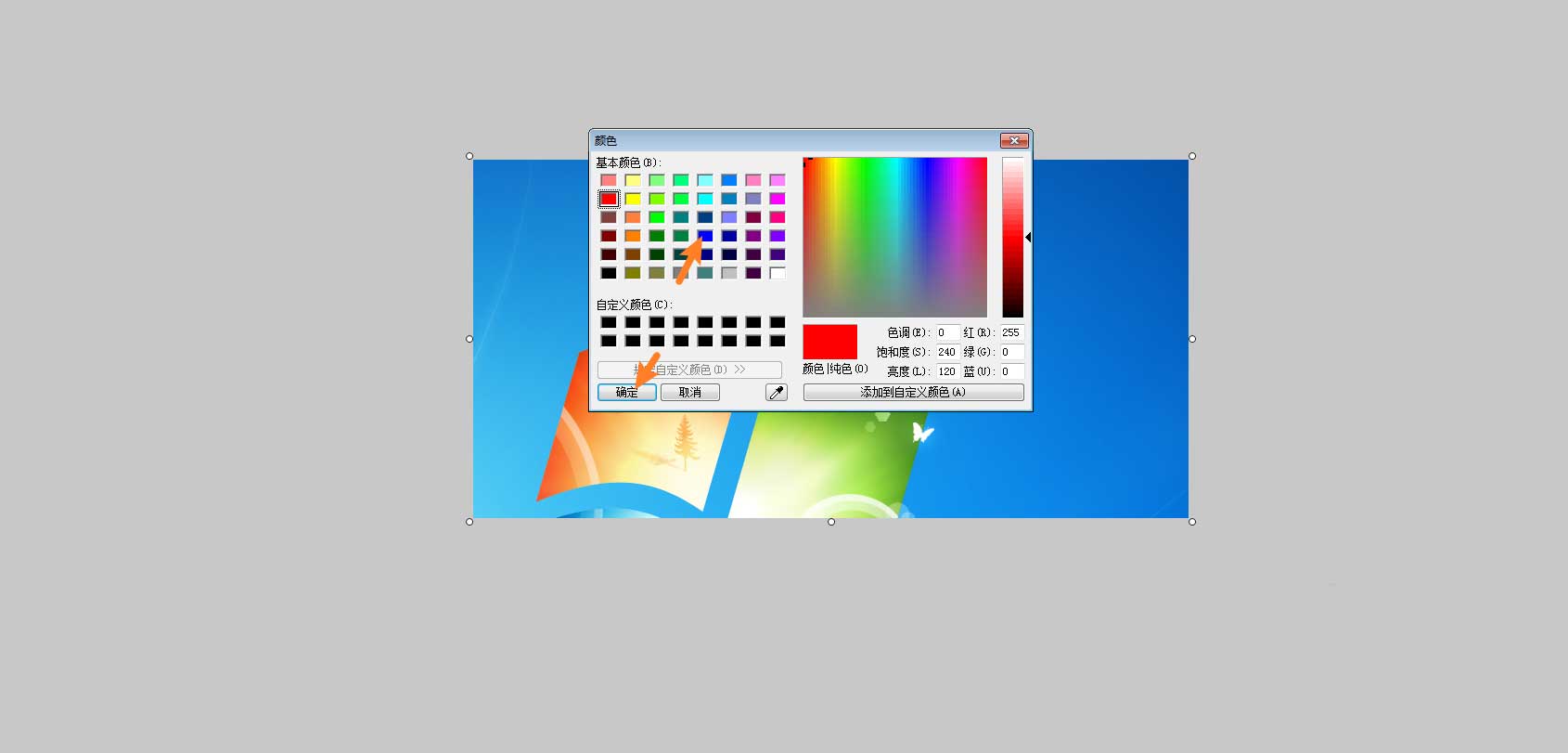 4、点击底部颜色,选择一个箭头的颜色确定,如下。