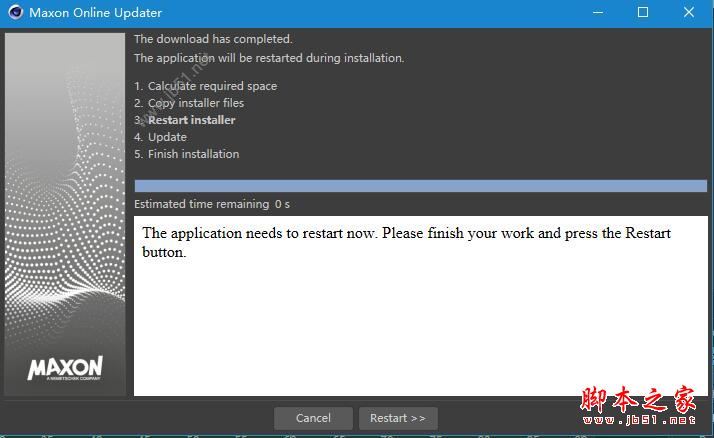 点击continue,直至安装完成,点击restart重启软件