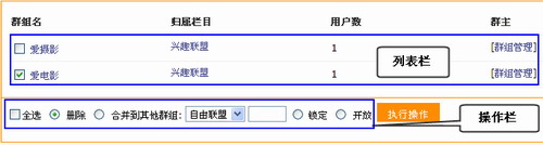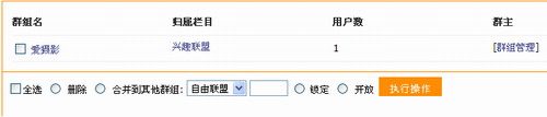 选择上图中列表栏中的需要删除的群组名,然后再选择操作栏中一个删除按钮,最后点击“执行操作”按钮即可进行批量删除。如下图所示: