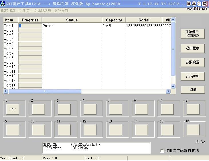 1、解压刚才下载的量产软件包Test_SM32x_H1226_HH,双击运行sm32Xtest.exe。如下图: