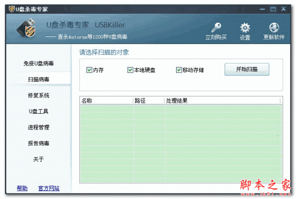 下载安装运行U盘杀毒专家之后,把已经感染病毒的U盘插进电脑。U盘杀毒软件会自动扫描检测U盘,彻底清除里面的病毒,而且还会对U盘系统进行自动修复那些被病毒隐藏和破坏的文件。