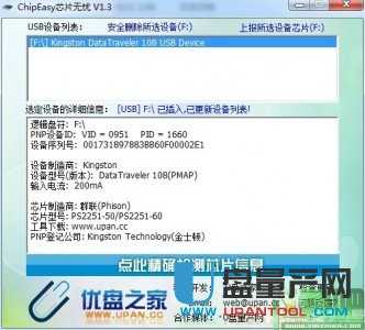 首先用ChipEasy芯片无忧 V1.62(u盘芯片检测工具) 检测U盘是否为群联,和具体芯片型号,按检测结果 再下载相对应的量产工具