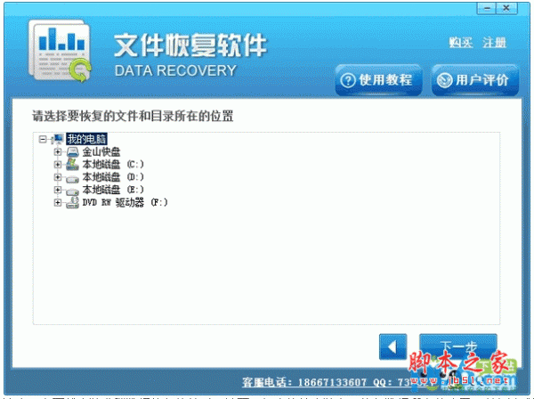 第三步,选择要恢复数据的U盘,然后点击下一步。如果软件没有检测到U盘,大家则需要重新插好U盘,直到软件能检测到U盘。