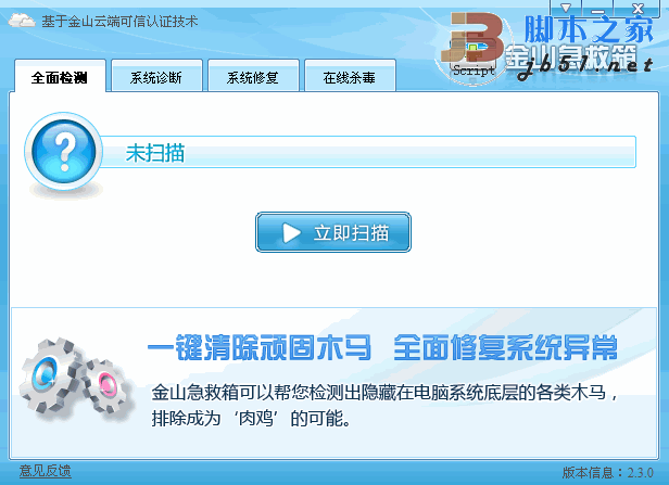 4、打开“金山急救箱”,勾选扩展扫描,然后立即扫描。