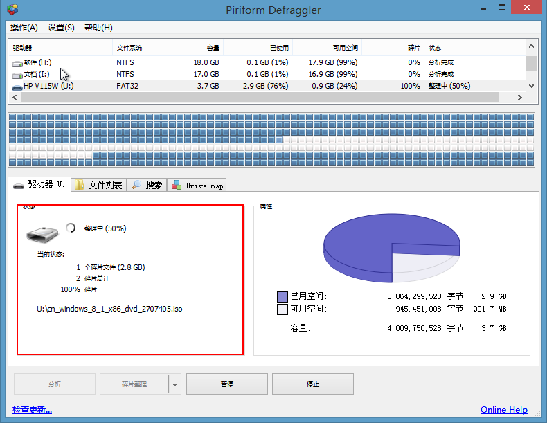 5、碎片整理所需的时间根据磁盘内所存在的文件数量而绝对,耐心等待碎片整理的过程结束即可,如下图所示