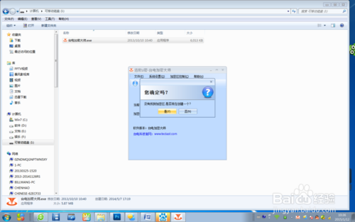 2、分区之前要注意,把优盘里的文件都备份好,因为如果在优盘要分区加密的话,是要格式化优盘的,当然,如果你是新买的优盘,里面没东西就当我没说啦,我的是已经备份好了,然后把优盘里的文件删掉了,现在开始演示分区啦!打开U盘点击图示的软件