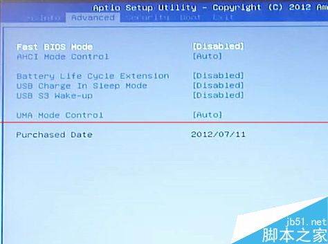 3、在Advanced选项中选择Fast BIOS Mode 将这个选项选择成Disabled。