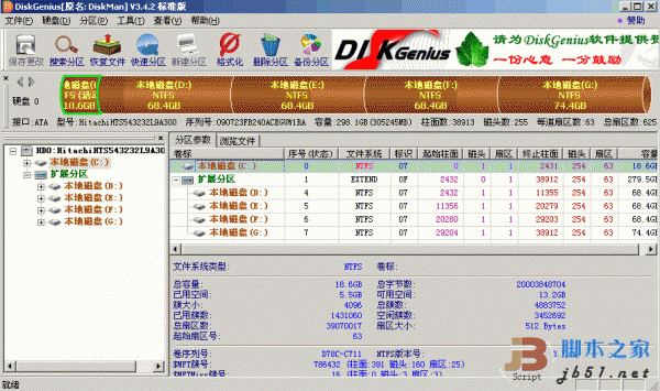 4、然后打开DiskGenius软件,单击u盘的那一项。我们看到了1000多MB的空闲空间。