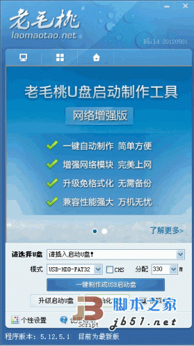 如今U盘安装系统变得非常流行,很多朋友都已经学会了使用U盘安装系统,但一些菜鸟朋友依然对U盘如何安装系统充满迷惑,以下脚本之家为大家介绍下U盘安装系统最重要的一个部分,将U盘制作成类似于光驱的启动盘,也就是可以开机直接读取U盘的内容,没有制作启动的U盘是无法实现此功能的,以前为大家也介绍了很多制作U盘启动方法,包括U大师、大白菜等工具制作U盘启动的方法,下面本文与分享下老毛桃U盘启动盘制作教程,喜欢的电脑爱好者朋友一起来学习下吧。