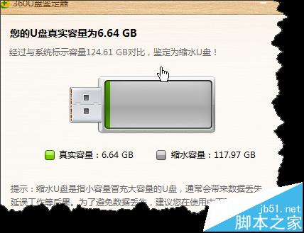 7、360的鉴定U盘时间比较长。完成以后会弹出如图的窗口。