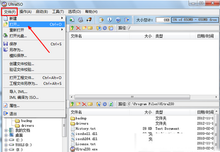 点击“文件”菜单下的“打开”按钮,打开一个你要装进U盘的操作系统镜像。