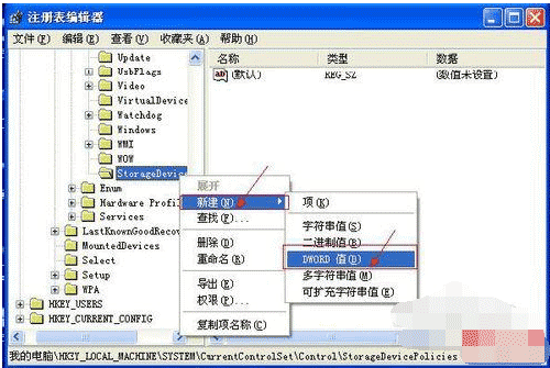 查看U盘目录下的文件数是否达到最大允许值,运行regedit.ext,进入注册表编辑器,依次找到HKEY_LOCAL_MACHINE\SYSTEM\CurrentControlSet\Control\StorageDevicePolicies(如果没有StorageDevicePolicies,则可以新建一个,方法是:右键单击Control选择“新建”,选择“项”,输入StorageDevicePolicies即可。如图: