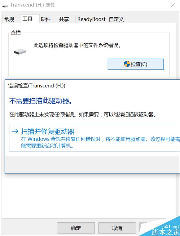 进入我的电脑(或计算机或此电脑),鼠标右键点击U盘对应的盘符进入它的属性界面。然后进入工具选项卡,点击“检查”按钮,进行扫描并修复的操作。