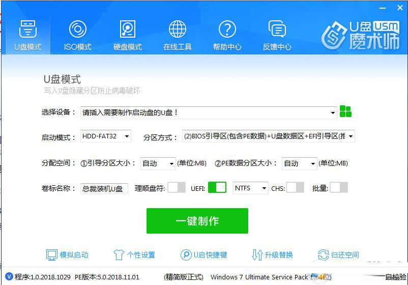 U盘魔术师USM是系统总裁开发的一款全能型的U盘启动盘制作工具,具有兼容性好、稳定、纯净无捆绑等特点。当然有一个缺点,就是体积略大,但是对于经常装机的朋友来说,下载一次就可以拥有一个全能好用的U盘启动盘,这点体积不算什么,下面小编就分享下U盘魔术师USM U盘启动盘制作教程。
