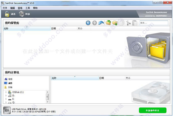 sandisk secureaccess 3.0,中文名称又叫做闪迪保险箱安全软件,是闪存盘中附带的一个免费的数据加密和密码保护的应用软件,该软件以快速、简易的方式来存储并保护你在闪迪USB闪存盘上的重要、敏感的文件。通过个人密码设置,对您保存在您的私人保险库的资料是进行保护,您存进去的文件会自动加密,即使你和他人共用闪迪USB闪存盘或者闪存盘丢失、被盗,存在里面的文件也不会被他人查看到,真正保护用户的隐私安全,欢迎免费下载体验。