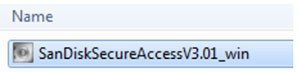 将您的SanDisk USB闪存驱动器连接至电脑后,双击SanDiskSecureAccessV3.01_win.exe文件以运行sandisk secureaccess 3.0软件。(有的电脑可能会要求您打开电脑目录,查找已连接的驱动器的位置。)