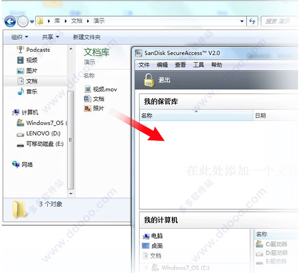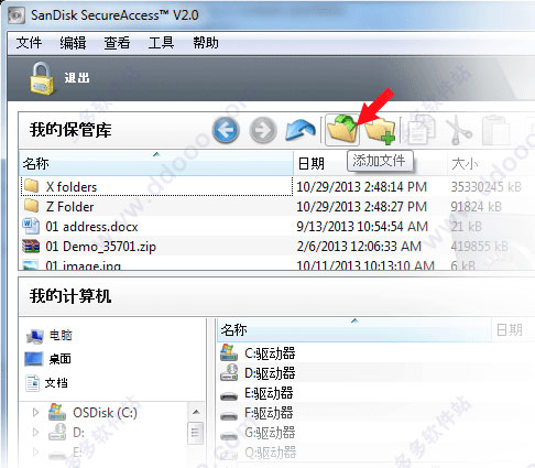 选择您所想添加的文件和/或文件夹,然后拖放文件到闪迪SecureAccess 3.0软件的主屏幕。