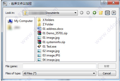 2. 选择您所要添加的文件和/或文件夹,单击加密。