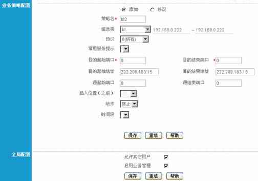 在“高级配置”-“业务管理”中新增一条策略,设置如下