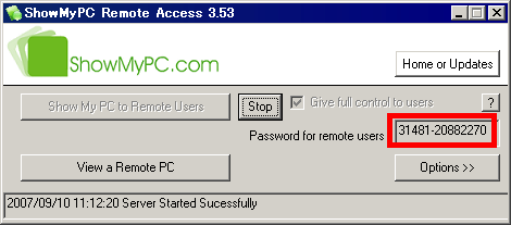 ShowMyPC 是一个设计相当简易的远程桌面控制软件,被控制端和控制端都需要执行这个软件,其网络联机的基本核心技术是利用广为人知的 VNC 技术,但是 ShowMyPC 软件的设计又免除纪录键入 IP address 及输入账号密码的认证过程。 当使用者先在被联机的计算机执行了 ShowMyPC 之后,按下「SHow My PC to Remote Users」,它会显示一组密码,你只要带着这组密码在任何一台计算机执行 ShowMyPC 软件,不需要输入任何 IP 或账号,直接输入这组密码,就能连到你要控制的那台计算机,显示出桌面让你操控。