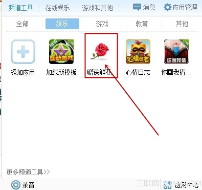 这个鲜花位置--需要各位用户打开YY,进入频道, 点击右下角应用中心