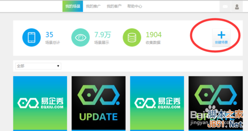 进入易企秀官网后,点击右上角“创建场景”。