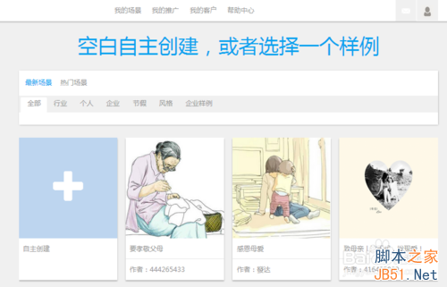从模板中选择一个与自己想要自作场景可以套用的模板,也可以选择“自主创建”。