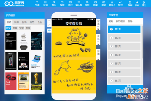 易企秀有手机客户端,Android和iOS版本也都可以创建场景。