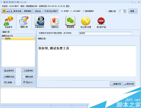 软件可以编辑群发文字,在群发时候使用,界面如下图: