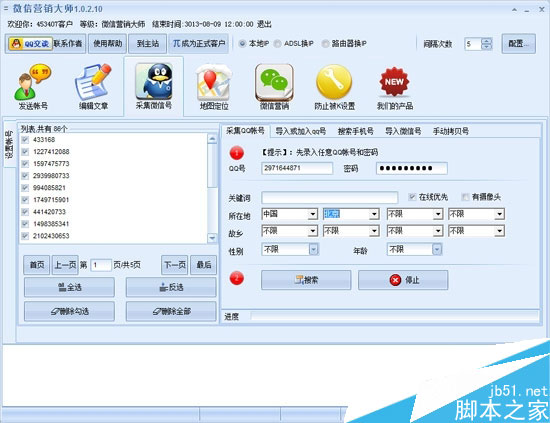 用户可以搜索QQ号,加入QQ号,生成手机号,加入微信号。这些账号可以在后面的“添加微信好友”中使用。