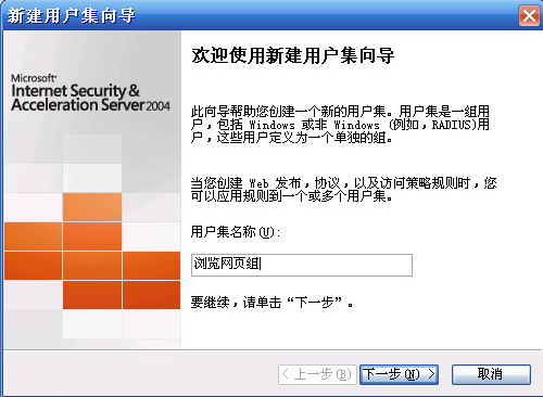 在“用户集名称”中,输入新建的用户集的名字“浏览网页组”,然后点击“下一步”,来到“用户”页。