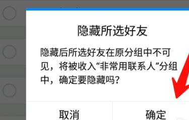 4、在弹出的隐藏好友提示框中,点击图中的“确定”即可将所选中的好友隐藏。