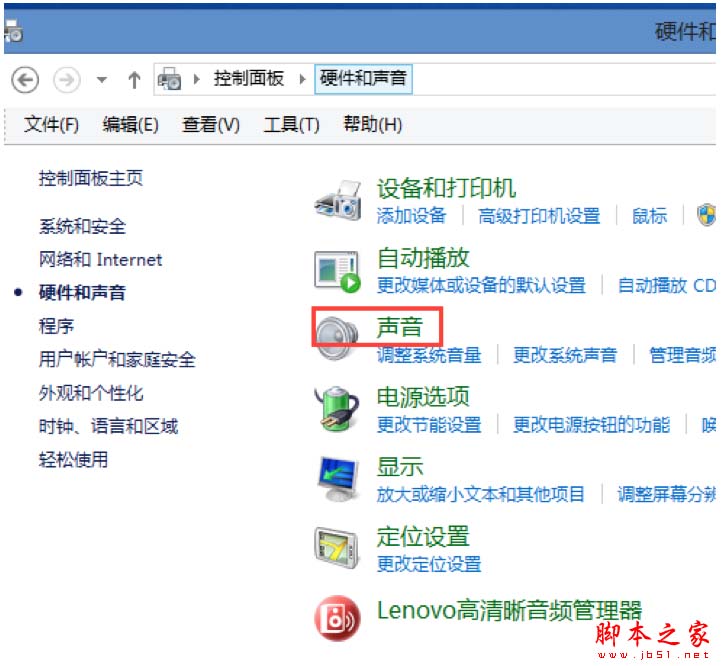 控制面板-看硬件和声音-声音