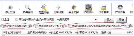 同时也可以勾选软件顶部“自动禁止无线路由器上网”“自动禁止手机平板”及禁止“自动检测随身wifi并自动其手机平板上网”即可达到相应的控制功能。