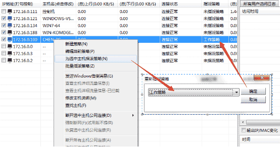 第三步:在主机名上单击右键选择“为选中主机指派策略” 然后选择刚刚新建的“工作策略”单击确定。