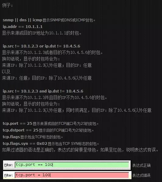 "not tcp port 3128 and tcp port 23"与"(not tcp port 3128) and tcp port 23"相同。