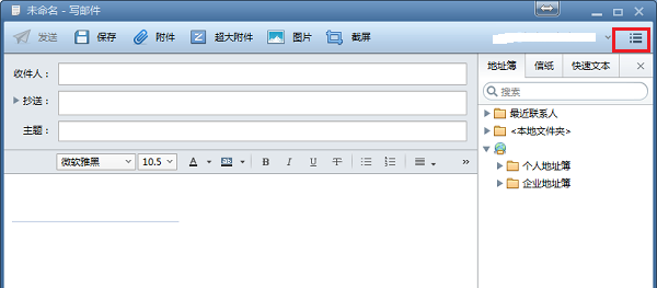 2、进去写邮件的界面之后,点击右上方的列表菜单图标,如下图所示: