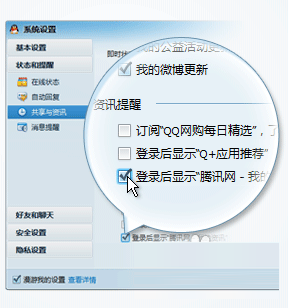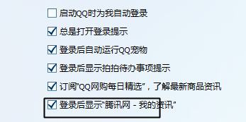 取消勾选登录后显示腾讯网—我的资讯