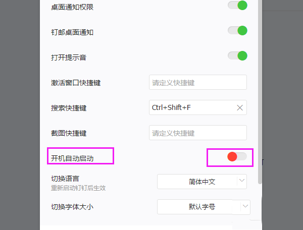 5、找到【开机自动启动】,并点击它对应的按钮(红色点击后变成绿色)。