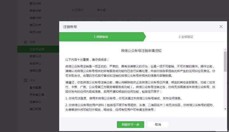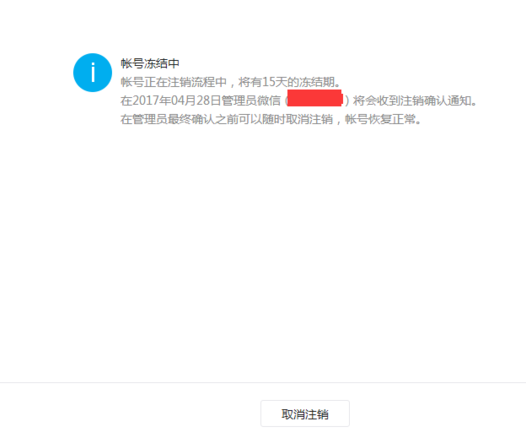 8、后悔药——撤销注销。在15天以内,如果想撤销注销,可登陆微信公众号平台进行撤销。