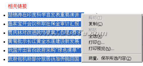 需要保存网页时,点击鼠标右键,选择“网童,保存图片|FLASH”或“网童,保存正文内容”,网童自动抓取网页的正文内容或图片并显示在一个新的窗口中,然后点击保存图标即可,或按CTRL+S。