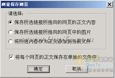 第二步,此时网童提示您选择“保存所选链接所指向的网页的正文内容”、“保存所选链接所指向的网页中的图片”、“将所选内容作为正文添加到当前文件”。如下图: