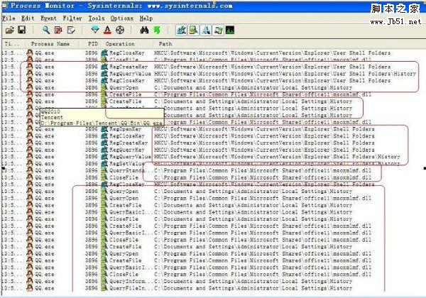 使用ProcessMonitor查看QQ活动记录。ProcessMonitor可以在微软官方主页
