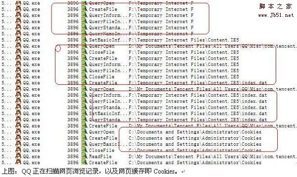 以前在网上偶尔看过说QQ在后台偷偷上传文件的消息,当时还不怎么相信。但是前几天我查看监控软件,发现QQ只要打开之后,不光是偷偷在后台上传东 西,而且扫描电脑中的网络浏览记录,扫描桌面文件,扫描文件的打开记录,扫描office文档,甚至扫描本身就属于隐私的cookies缓存记录!