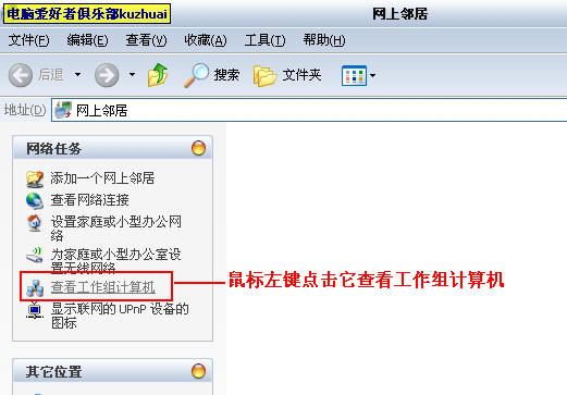 第一种添加方法,我们打开网上邻居,查看工作组和计算机,请看图片