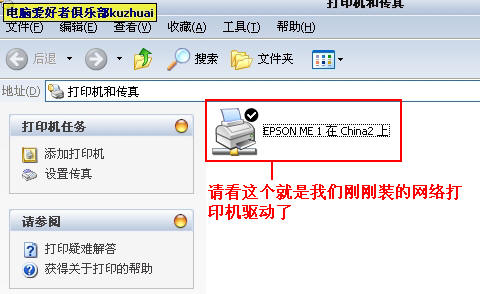 安装好后,我们打开我的电脑--控制面板--打印机和传真机,就会发现网络打印机已经添加好了,请看图片
