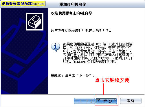 然后出现打印机添加向导,这里我们选择下一步,请看图片