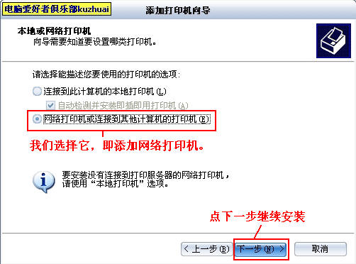 然后点下一步,这里会提示你是否安装网络打印机,我们选择是,请看图片