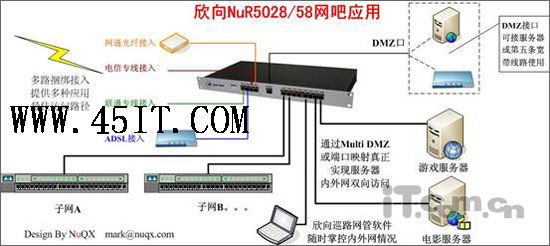 更重要的一点,就是“欣向” NuR5058/NuR5028提供了网吧最盼望的功能。就是稳定、快速同时接入网通和电信线路、全方位提供网络服务。同时无差别访问网通的电影、电信的游戏。