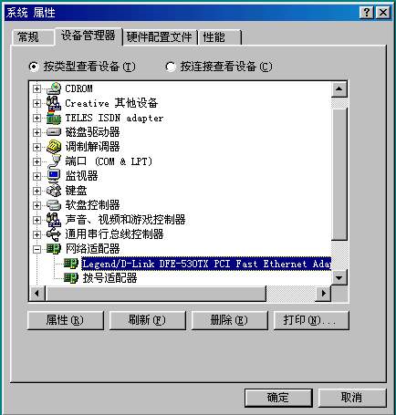 重启以后,需要检测网卡驱动是否安装成功,计算机桌面-我的电脑-点击右键-属性,进入设备管理器,点击网络适配器菜单,看看网卡是否安装成功,中断是否有冲突。(图507.jpg)